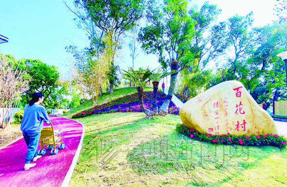 百花村公園位于漳州高新區(qū)九湖鎮(zhèn)東北部的長福村,占地50畝,建設(shè)有籃球場、書法廣場、中心活動廣場、文化廣場、觀景平臺、鏡池等休閑區(qū)域和景觀。“這個公園是在原有花果苗場基礎(chǔ)上改造而成的,說起這個苗場,當(dāng)年朱德委員長來村里視察時也到訪過,還在這邊的石凳上休息過。”長福村黨支部書記朱子露指著公園內(nèi)的一排石凳對筆者說,長福村被譽為“百花村”也與這段歷史有關(guān)。