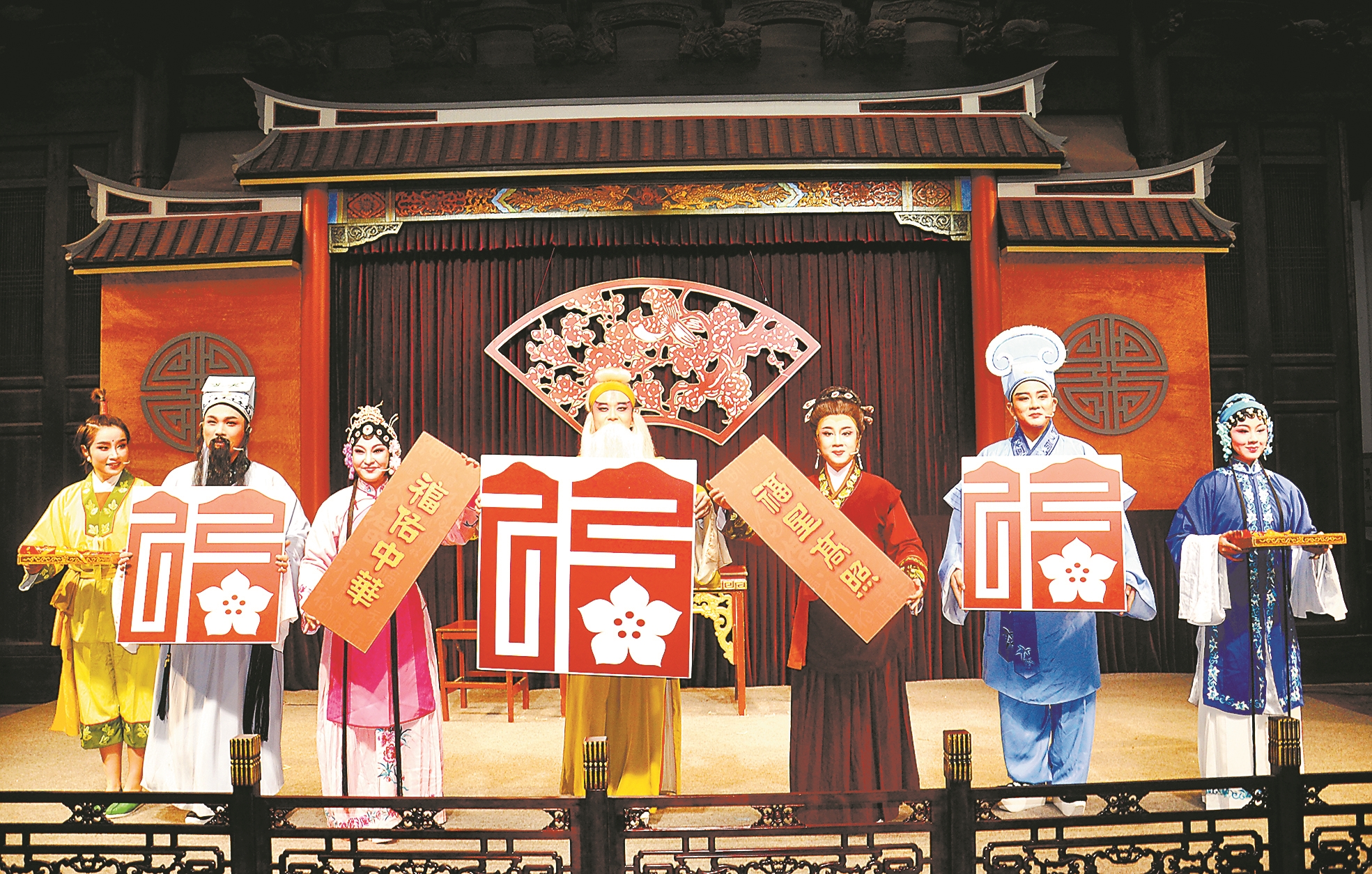 《三家?!窞檎闹菔兴G劇團[漳州市歌仔戲(薌?。﹤鞒斜Wo中心前身]創(chuàng)作演出的傳統(tǒng)經(jīng)典劇目,在1954年舉辦的福建省第二屆戲曲觀摩會演及華東區(qū)戲曲觀摩演出大會,曾獲劇本一等獎和二等獎。“《三家?!肥亲钅荏w現(xiàn)薌劇劇種特色的優(yōu)秀劇目,該劇表達了普通民眾在艱難生活時也不放棄對美好生活的期待,傳遞了鄰里之間互幫互助的傳統(tǒng)美德,展現(xiàn)了勞動人民樸素和鮮活的生命力。”漳州市歌仔戲(薌?。﹤鞒斜Wo中心主任陳朝暉說,為加強春節(jié)期間“福文化”氛圍營造,中心特別推出該劇,配合推廣“五福福建”文化標識,讓觀眾欣賞薌劇藝術(shù)的同時,更進一步了解“福文化”。 (記者 蕭鎮(zhèn)平 文/圖)