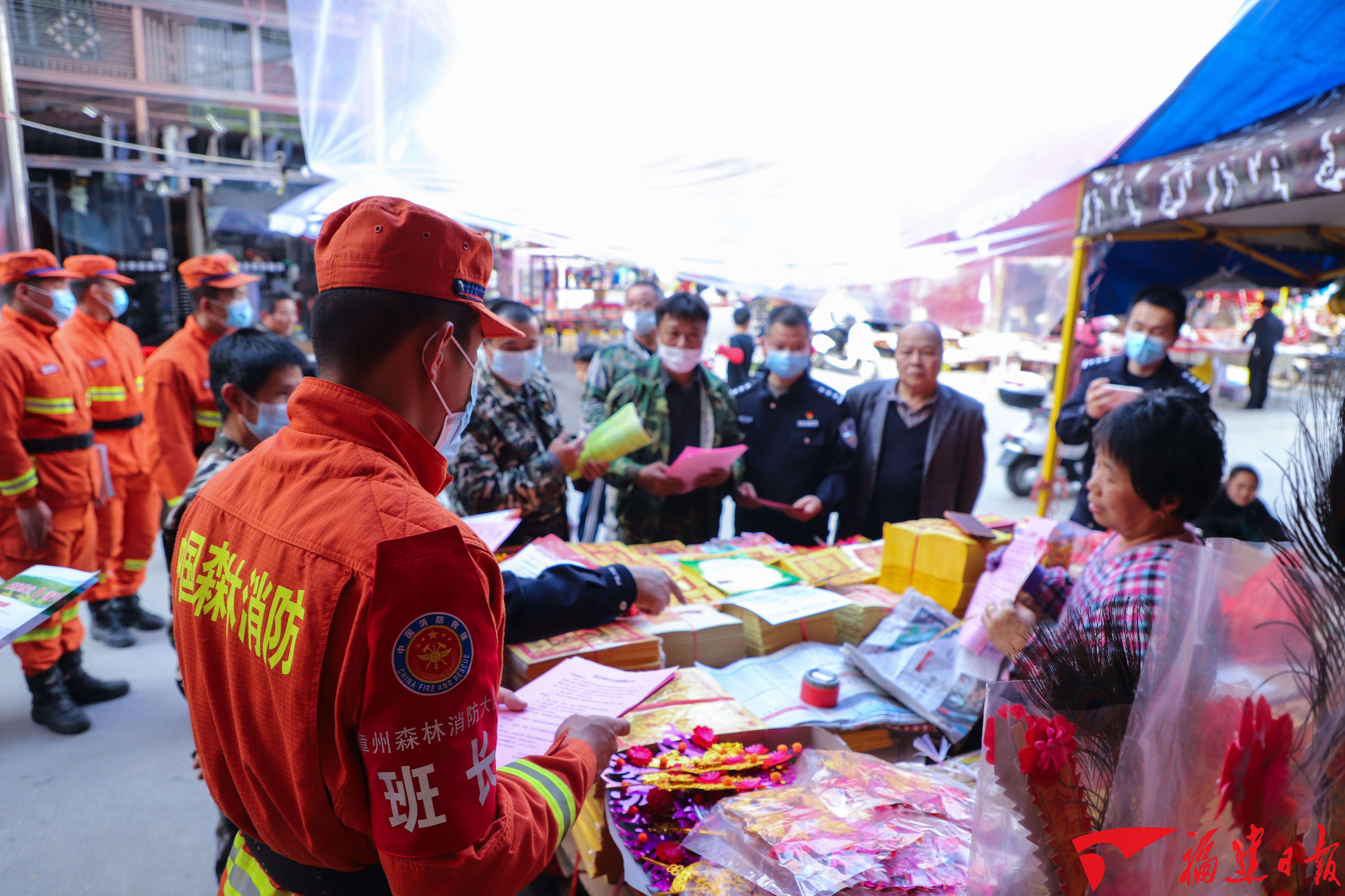 身著橙色制服的宣傳人員在人頭攢動(dòng)的集市里分外顯眼。他們將用火常識(shí)、森林火警報(bào)警電話、森林火災(zāi)的早期處理方法等常識(shí)傳播給每名群眾,盡最大限度普及森林防火常識(shí)。詔安縣防火辦的工作人員表示,他們每年春節(jié)臨近的時(shí)候都非常擔(dān)心駐地的森林防火安全問(wèn)題,今年森林消防員主動(dòng)到鄉(xiāng)鎮(zhèn)宣傳森林防火科普知識(shí),做法非常好,效果也不錯(cuò),讓他們心里更加有底。