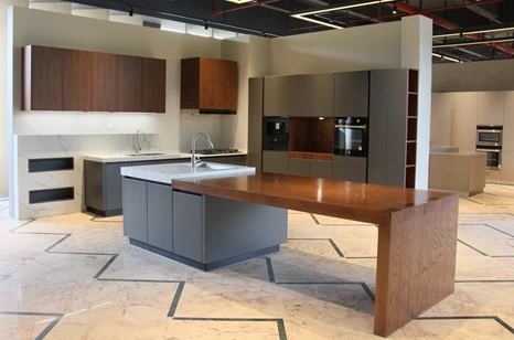 暖調(diào)的胡桃木實(shí)木貼皮,純天然木質(zhì)肌理清晰可見,樹木經(jīng)年生長的面貌映于光滑的抑菌烤漆面之下,讓人聯(lián)想到綿延漫長的歲月游痕。利落的金屬包框嚴(yán)絲合縫,現(xiàn)代極簡氣質(zhì)大隱隱于工藝,在材料及配色的交感迎合中,成就灰啞與木紋為主題的溫馨家庭時(shí)光。