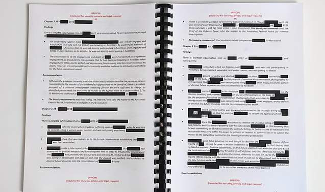 布里列頓歷時4年時間調(diào)查、聽取超過400名證人的證言后證實,2005年至2016年間,有25名澳大利亞駐阿富汗士兵涉嫌參與23起殺害戰(zhàn)俘和平民的事件。其中,共有39人被殺害,2人遭到虐待。受害者要么被特種部隊直接殺害,要么在特種部隊的指示下被殺。