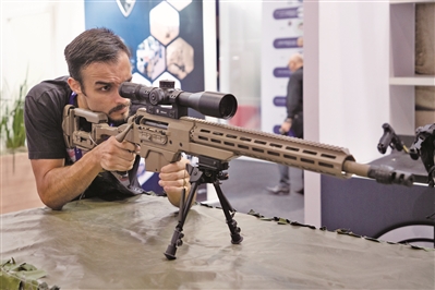 | 一名參觀者在巴西防務展上體驗操作狙擊步槍的偵瞄系統(tǒng)。 |