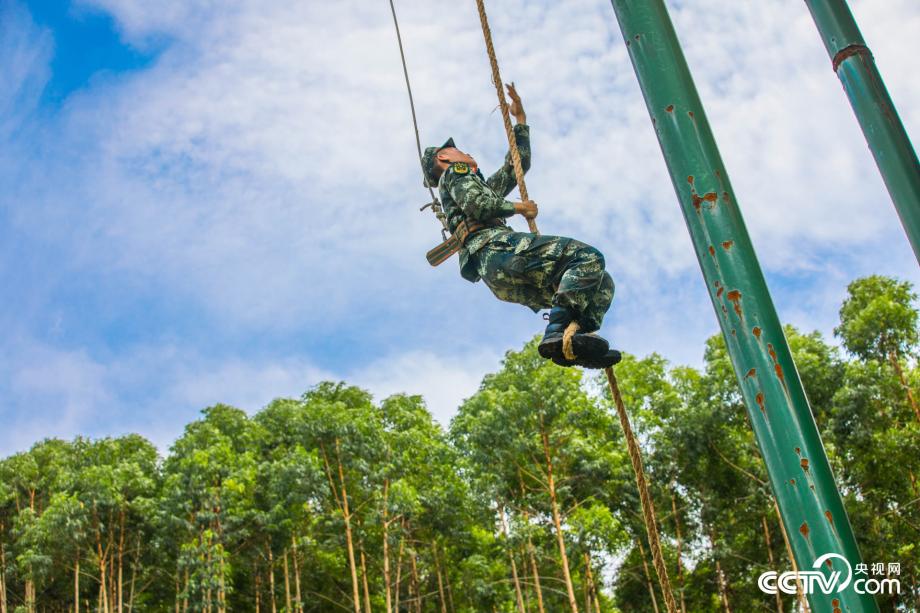 參賽官兵正在進行抓繩攀登。(果志遠)