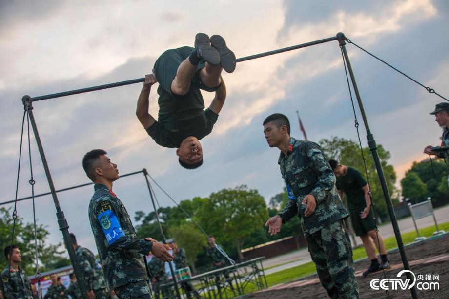參賽官兵正在進(jìn)行單杠卷身上比拼。(果志遠(yuǎn))