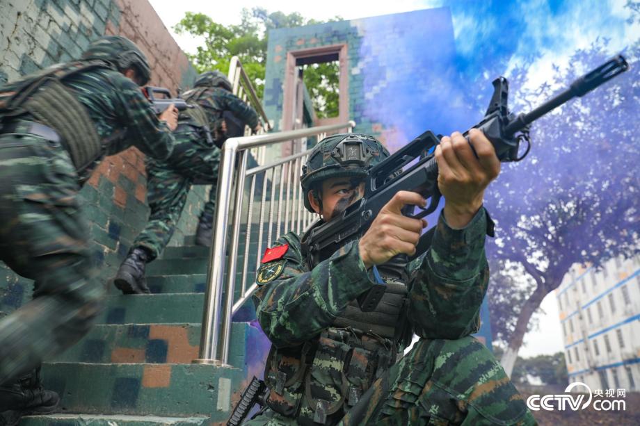 官兵利用煙霧掩護(hù)實(shí)施房屋突入。