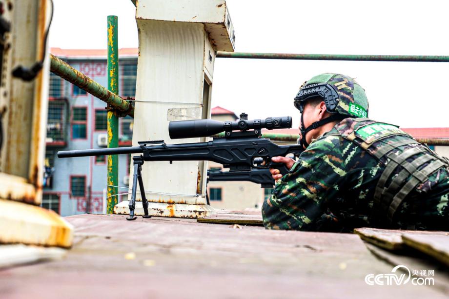 武警特戰(zhàn)隊(duì)員進(jìn)行俯角狙擊。
