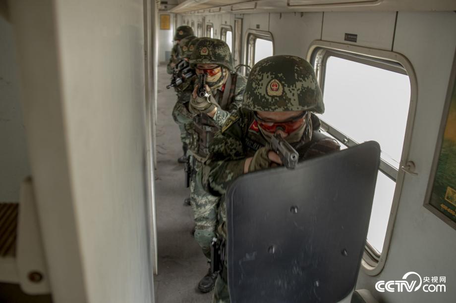 特戰(zhàn)隊員正在對車廂實施搜索。