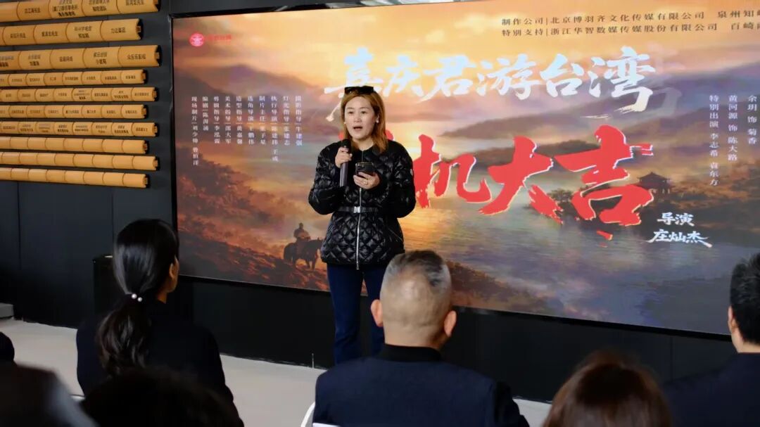 福建省百崎影視產(chǎn)業(yè)有限公司CEO潘融融代表園區(qū)致歡迎辭,表示百崎短劇園作為兩岸影視文化合作試驗區(qū)核心載體,致力打造兩岸文化融合發(fā)展前沿陣地。這部《嘉慶君游臺灣》扎根兩岸共同記憶、傳承中華文脈,正是兩岸文化交流的生動實踐。預(yù)祝開機大吉、拍攝順利、佳作傳世。