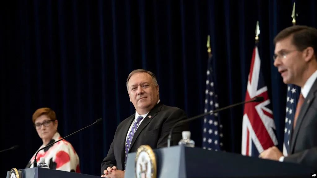 在會后記者會上,美國國務(wù)卿蓬佩奧和防長埃斯珀竭力對著兩位澳大利亞同行展示“盟友情誼”。一個拍著胸脯說美國永遠與堪培拉站在一起,一個夸贊澳大利亞,說堪培拉上周派遣5艘軍艦參與美日在菲律賓海的軍演,說這捍衛(wèi)了“盟國和伙伴的權(quán)利”。