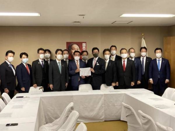 4月6日,保守團結(jié)會的成員提出要制定“臺日交流基本法”(圖自產(chǎn)經(jīng)新聞)