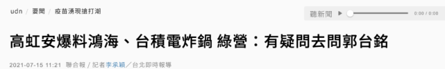 另?yè)?jù)臺(tái)媒報(bào)道,民進(jìn)黨臺(tái)立法機(jī)構(gòu)黨團(tuán)在15日回應(yīng)此事時(shí),則甩鍋稱(chēng),“高虹安有疑問(wèn)可去問(wèn)鴻海創(chuàng)辦人郭臺(tái)銘”。