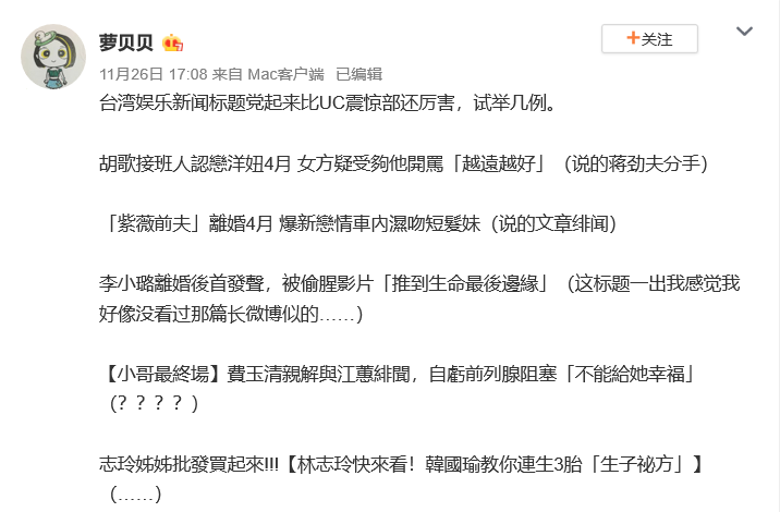 ▲來源:知名博主@蘿貝貝吐槽臺灣新聞標(biāo)題
