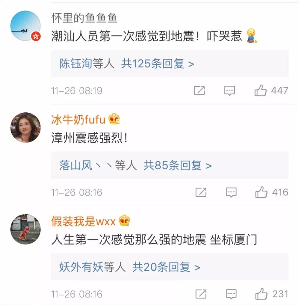 臺海網(wǎng)11月26日訊 據(jù) @中國地震臺網(wǎng)速報 中國地震臺網(wǎng)自動測定:11月26日07時57分在臺灣海峽附近(北緯23.37度,東經(jīng)118.61度)發(fā)生5.6級左右地震,最終結(jié)果以正式速報為準(zhǔn)。 廈門震感強(qiáng)烈!床在搖、樓在震、燈在晃……。