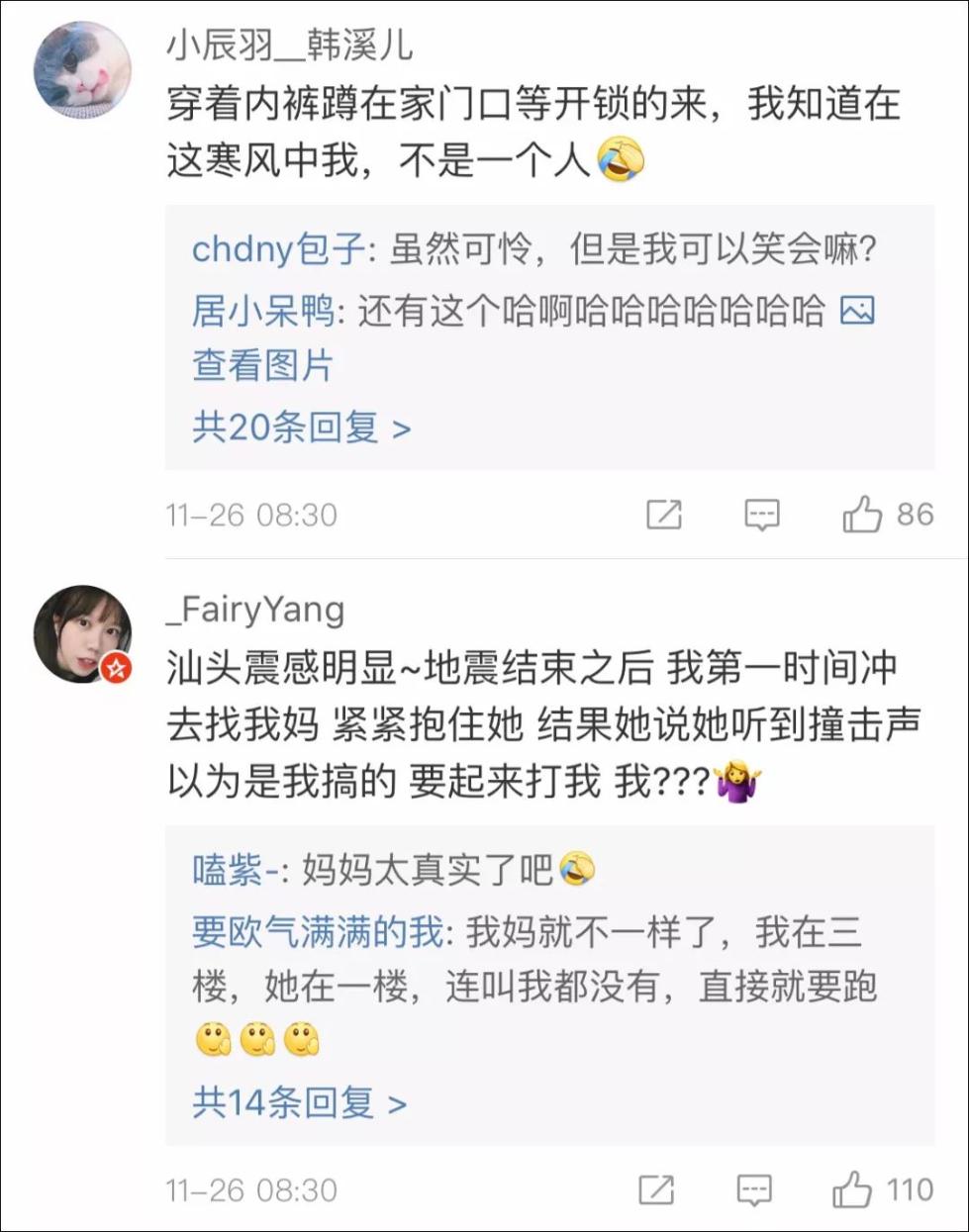 另一名家在廈門(mén)集美的居民稱(chēng),“住在7樓,因?yàn)槭琼攲诱鸶袕?qiáng),(地震時(shí))感覺(jué)分成兩波,震感前后持續(xù)將近1分鐘。”她稱(chēng),這次地震震感挺強(qiáng)的,“是我記事以來(lái)第二次震感這么強(qiáng)的,因?yàn)橐话?a href="http://www.dddjmc.com/news/twnews/" target="_blank">臺(tái)灣海峽有地震,廈門(mén)都會(huì)有震感。本來(lái)家里人都打算沖出去了,直到后來(lái)地震停下來(lái),我們才沒(méi)有下樓。”