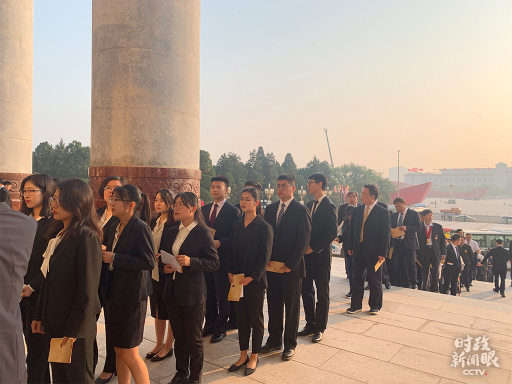 △儀式開始前,手持請(qǐng)柬排隊(duì)進(jìn)入大會(huì)堂的首都各界群眾。(央視記者沈忱拍攝)