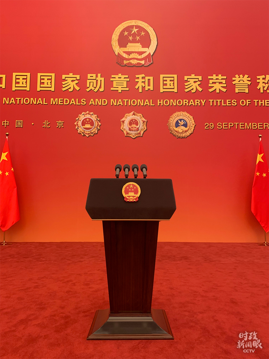 △頒授儀式的講話臺(tái)。(央視記者沈忱拍攝)