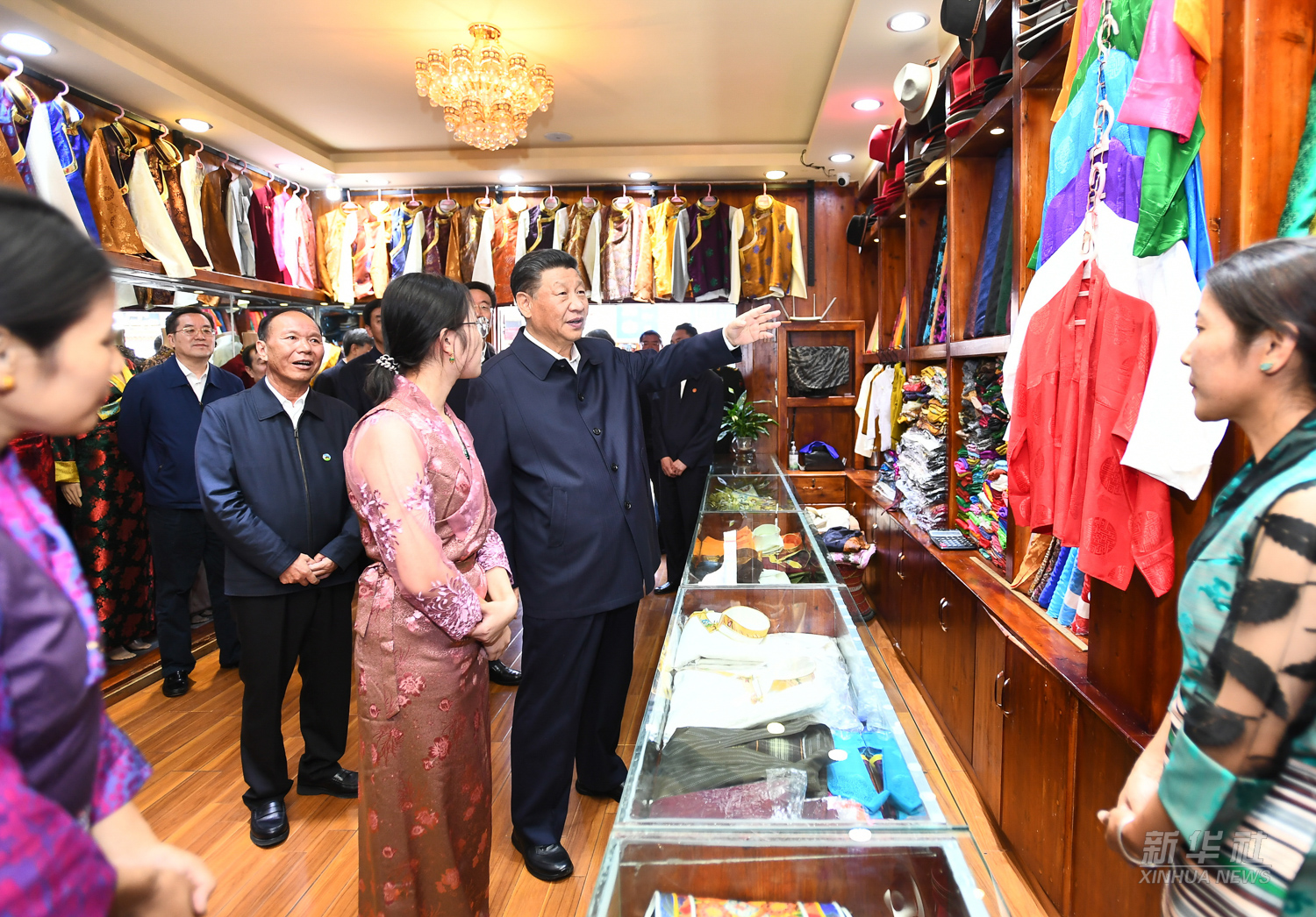 2021年7月21日至23日,習(xí)近平來(lái)到西藏,祝賀西藏和平解放70周年,看望慰問(wèn)西藏各族干部群眾。這是22日下午,習(xí)近平在位于拉薩市老城區(qū)的八廓街,走進(jìn)特色商品店,詢問(wèn)旅游文創(chuàng)產(chǎn)業(yè)發(fā)展、藏文化傳承保護(hù)等情況。