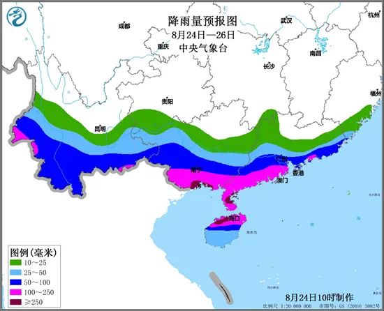 由于“馬鞍”移速較快,強降雨并不會在一個地方停留太久,使臺風(fēng)影響時間縮短,“馬鞍”今天主要影響華南,明天將轉(zhuǎn)至云南南部。中央氣象臺預(yù)計,24日至26日,廣東中南部、廣西中南部、海南島、云南南部等地將有大到暴雨,其中廣東西南部沿海、廣西南部、海南島北部等地有大暴雨,局地特大暴雨(250~300毫米)。但還需注意的是局地短時雨強會比較強,珠江流域防城江、欽江等中小河流可能出現(xiàn)超警戒水位,相關(guān)部門和公眾還需防范城鄉(xiāng)積澇等次生災(zāi)害。