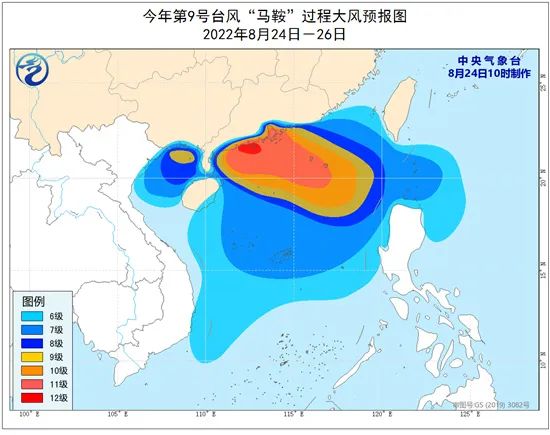 此外,大風(fēng)方面,24日至26日,南海中北部、巴士海峽、臺灣海峽南部海面、北部灣、西沙群島附近海域、中沙群島附近海域以及臺灣島西南部沿海、廣東沿海、廣西沿海、海南島沿海將有7~9級大風(fēng),“馬鞍”中心經(jīng)過的附近海域或地區(qū)的風(fēng)力可達(dá)10~12級,陣風(fēng)13~14級。