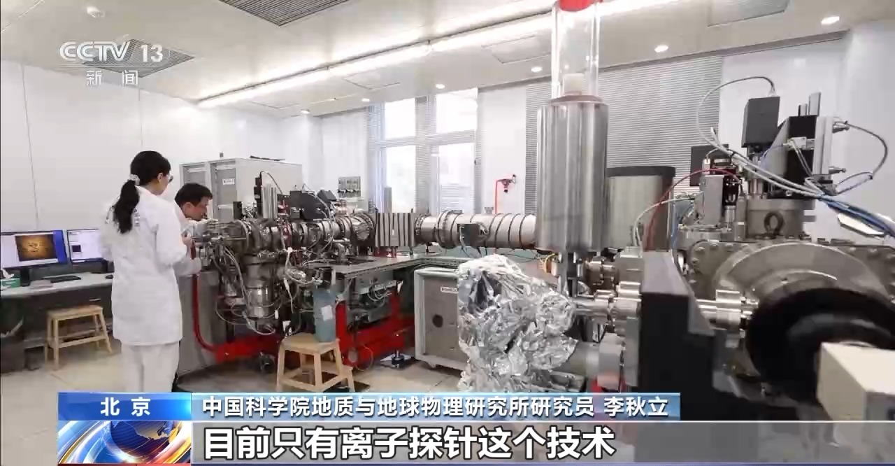 中國科學院地質與地球物理研究所研究員 李秋立:在這個800×800微米里邊找個2×2微米的一個小顆粒,在這么小的范圍可以激發(fā)它的,目前只有離子探針技術,我們進行了長期訓練,可以把它做到更小的范圍內測得更準的數(shù)據(jù)。