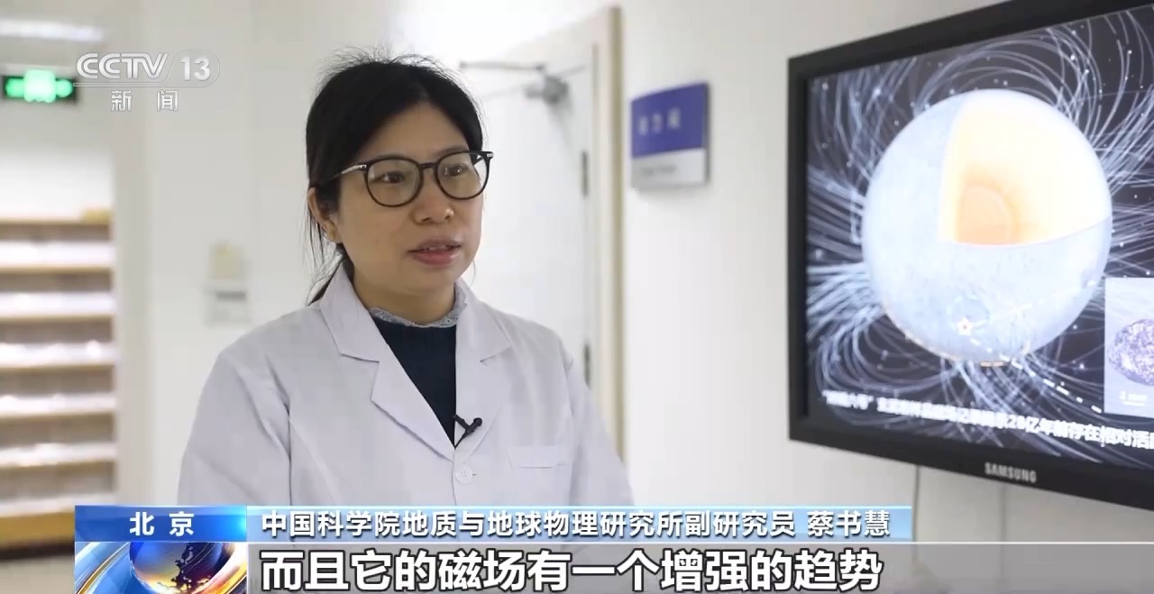 中國科學院地質與地球物理研究所副研究員 蔡書慧:發(fā)現(xiàn)距今20億年的時候,也就是月球演化的偏中后期,它還存在一個非常弱的磁場,大概強度是2到4個微特,不到現(xiàn)今地球磁場的10%,這說明在距今20億年的時候,月球的內部可能還是有一定的活力的,也存在一定的熱對流或者熱交換。