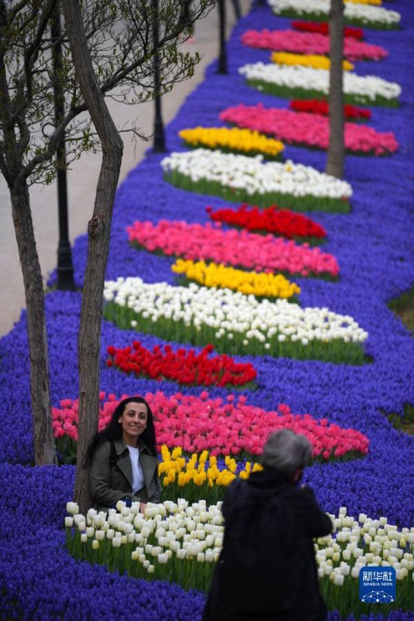 4月21日,人們?cè)谕炼湟了固共紶柕陌C谞柛使珗@內(nèi)觀賞郁金香。