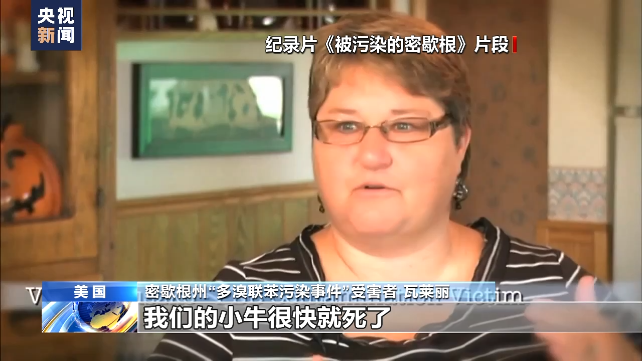 密歇根州“多溴聯(lián)苯污染事件”受害者 瓦萊麗:牛的髖骨上出現(xiàn)巨大的腫塊,發(fā)展到最后,腫塊大到裂開,還會流膿,我們的小牛很快就死了。