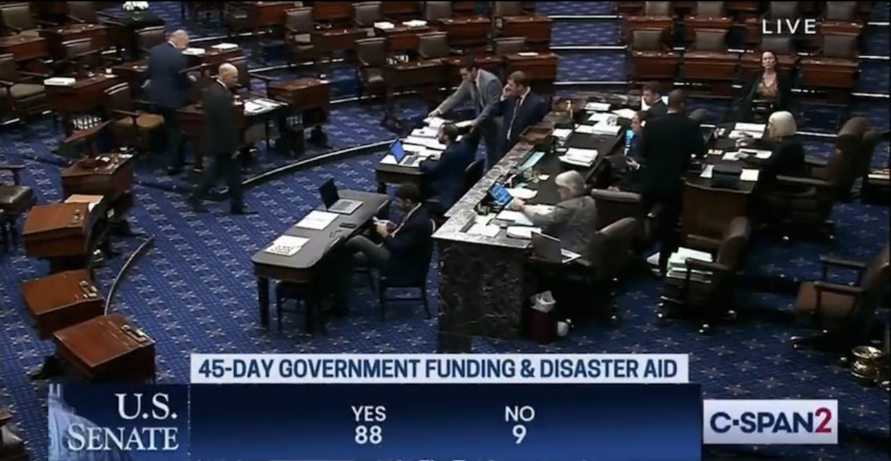 △參議院30日投票通過該項(xiàng)短期撥款法案(視頻截圖)