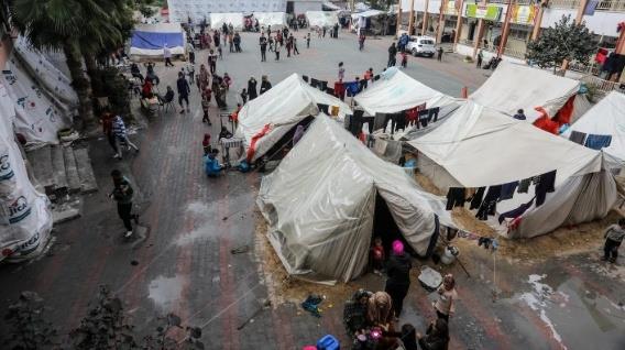 △聯(lián)合國近東救濟工程處在加沙地帶拉法一學(xué)校內(nèi)安置流離失所的民眾(資料圖)