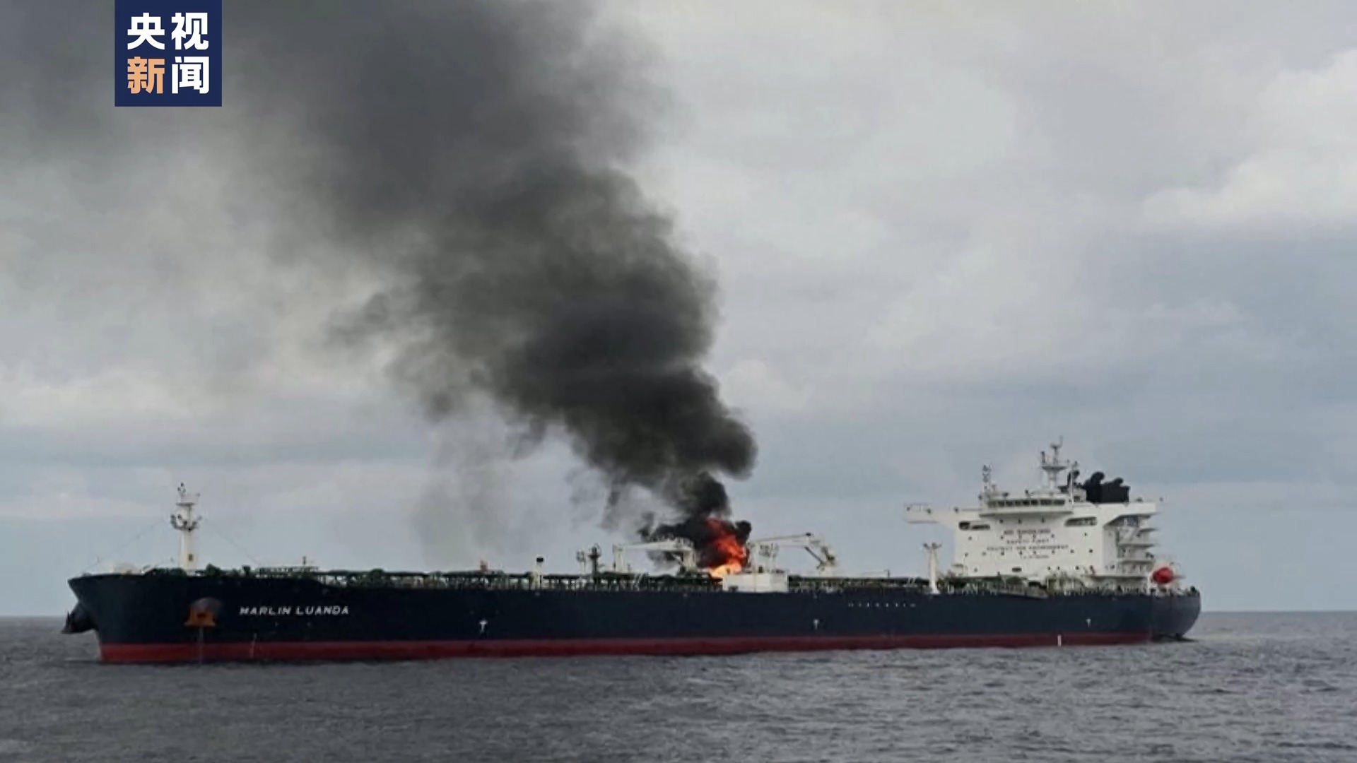 27日,“馬林·羅安達(dá)”號(hào)油輪被導(dǎo)彈擊中后起火的圖片被發(fā)布在社交媒體上,從圖片中可以清晰地看到“馬林·羅安達(dá)”號(hào)油輪上燃起大火,有濃煙升起。