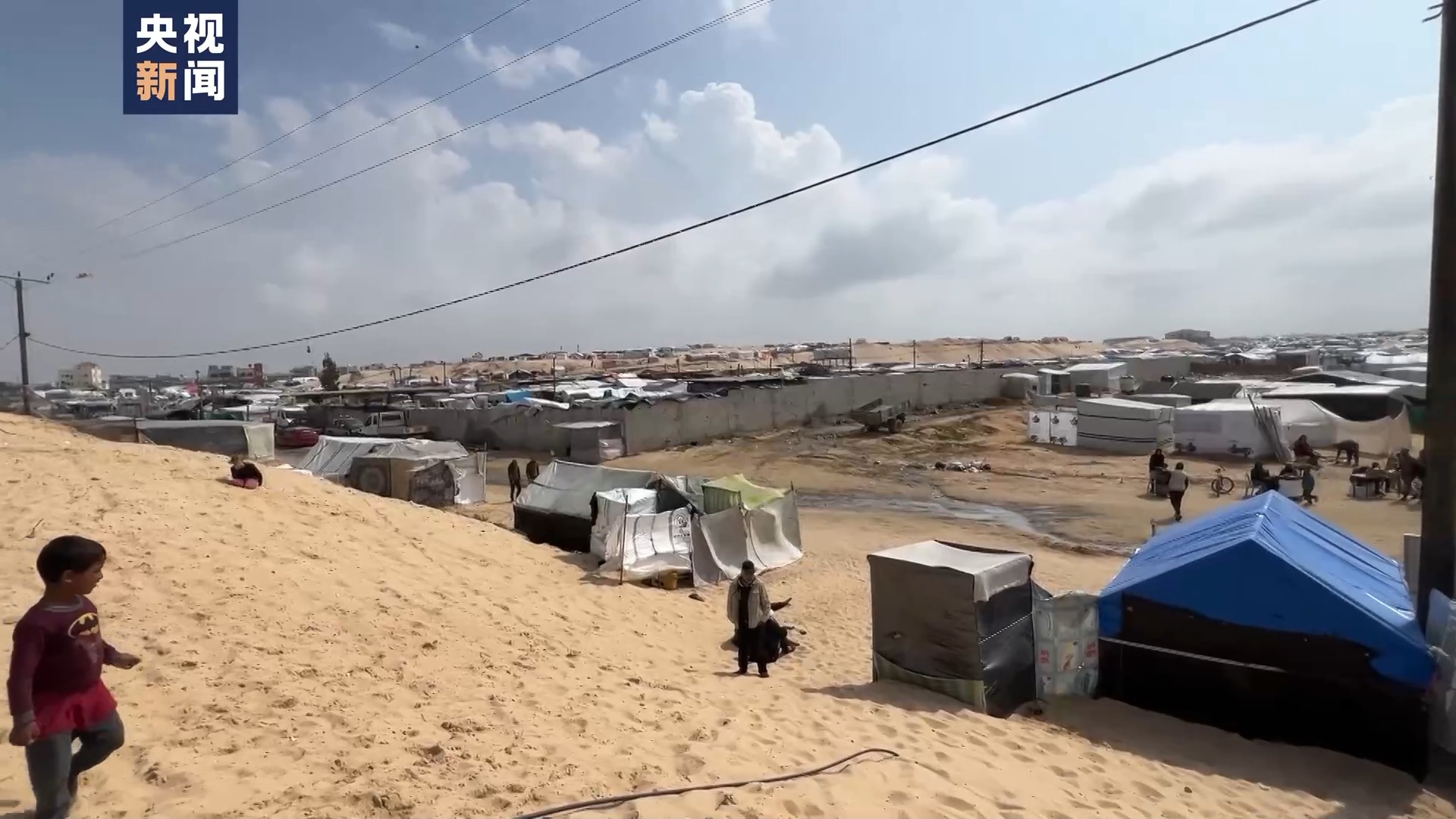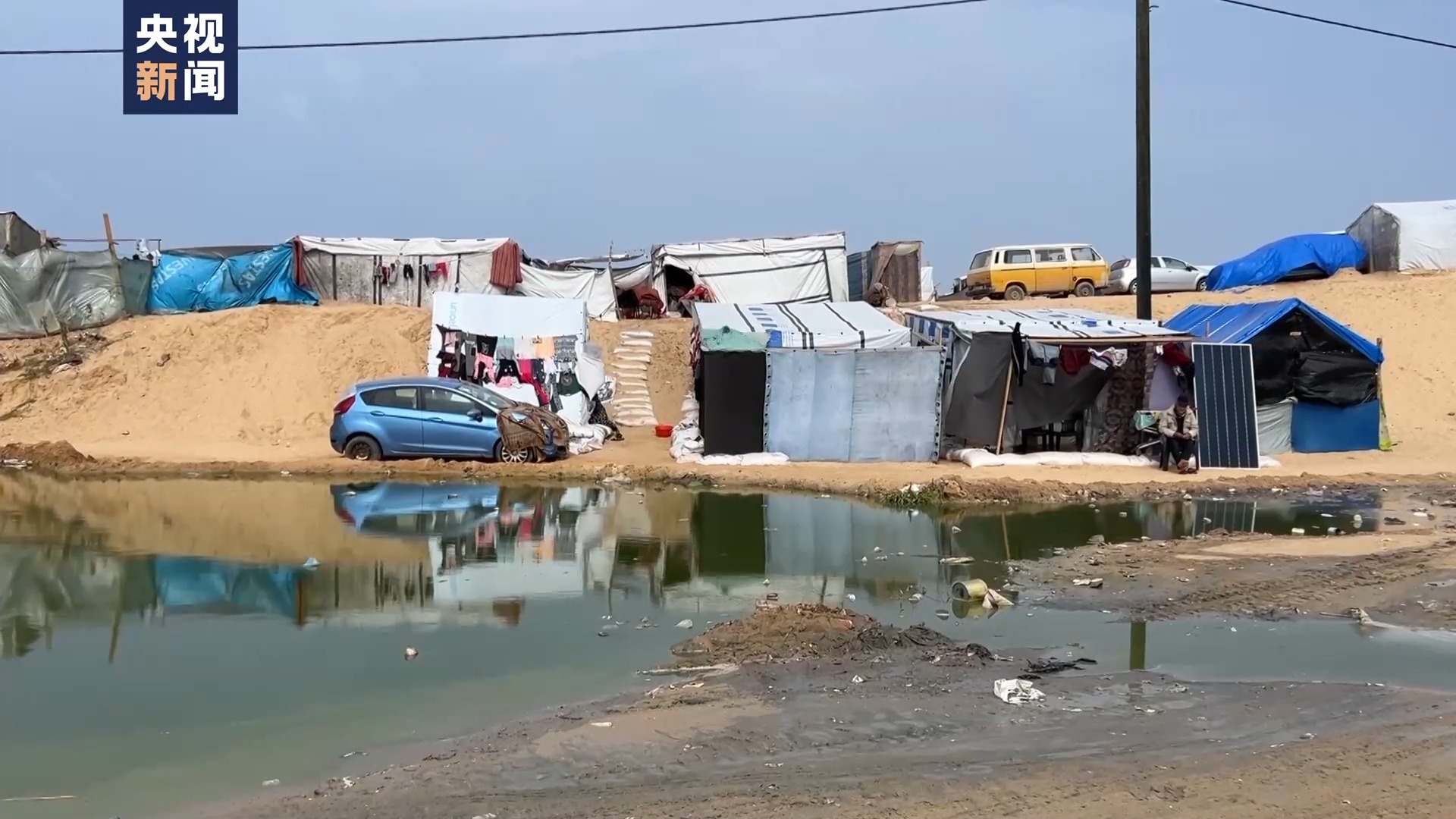 總臺報道員 艾哈邁德·扎庫特:我們現(xiàn)在位于加沙地帶南部拉法的一個難民營。在難民營前,廢水和固體廢物大量堆積,導致疾病傳播、害蟲繁衍,影響這些流離失所者的健康和生活。