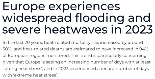 過(guò)去20年來(lái),與高溫相關(guān)的死亡率增加了約30%;在受監(jiān)測(cè)的歐洲地區(qū),估計(jì)有94%的地區(qū)出現(xiàn)了與高溫相關(guān)的死亡人數(shù)增加的現(xiàn)象。