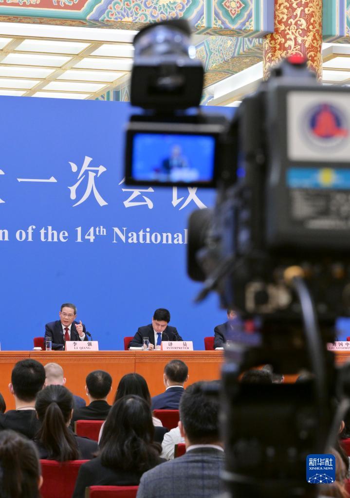 3月13日,十四屆全國人大一次會議在北京人民大會堂舉行記者會,國務院總理李強出席并回答中外記者提問。國務院副總理丁薛祥、何立峰、張國清、劉國中參加。