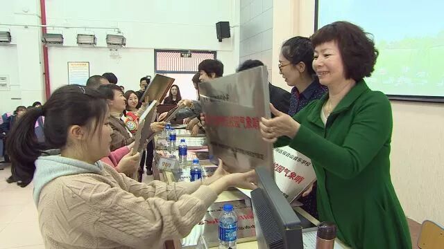 18所建立校園氣象站的學(xué)校分別被授予牌匾,