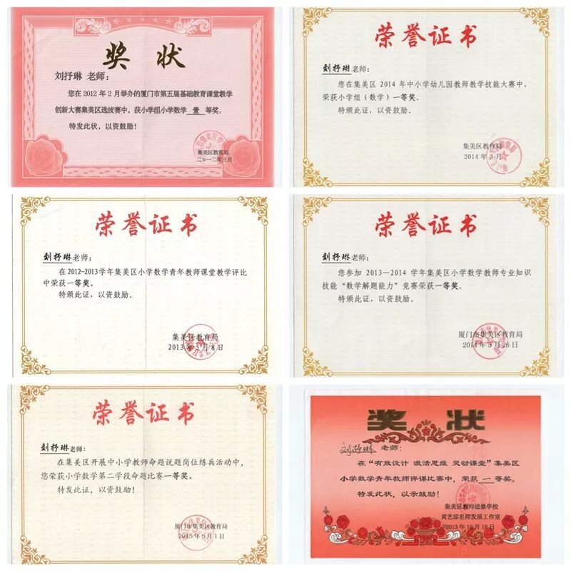 2014年3月,學(xué)校安排劉抒琳參加集美區(qū)教師技能大賽,比賽共4項(xiàng),有些是她從沒接觸過的,她打過退堂鼓,但還是堅(jiān)持下來了。滿滿2天的比賽,劉抒琳獲得了數(shù)學(xué)組第一名,這個(gè)名次是賽前想也不敢想的。劉抒琳明白了:面對(duì)新挑戰(zhàn),可能會(huì)因?yàn)椴幌胩鍪孢m圈選擇逃避,但錯(cuò)過了你就不知道自己能達(dá)到的高度。從此,她告訴自己,抓住一切機(jī)會(huì)不要輕言放棄。