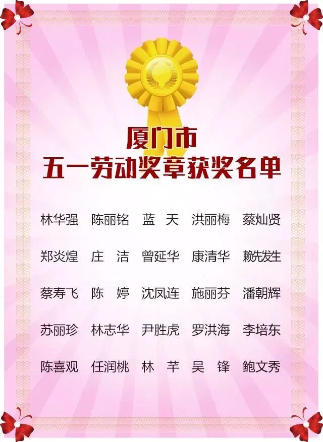 湖里區(qū)獲得廈門市五一勞動(dòng)獎(jiǎng)狀名單如下