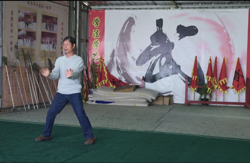 最早是學五祖拳,宋江陣是1994年村里最后一次組織,在村里從頭到尾學了一陣子,村里面所有老拳師多少都有跟他們學過,大概學了3個月,但這套宋江連環(huán)八卦陣法,已經(jīng)傳襲了近百年。