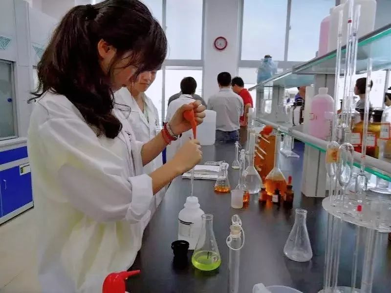 ▲藍保(廈門)水處理科技有限公司技術(shù)人員正在進行實驗/郭妮妮 攝