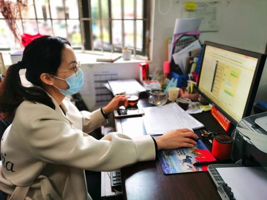 一個(gè)媽媽一邊懷抱著還在抽泣的孩子,一邊點(diǎn)擊的鼠標(biāo),專心致志的工作。這個(gè)媽媽就是僑英街道樂(lè)海社區(qū)黨總支委員、居委會(huì)副主任吳曉梅,懷里是她年幼的女兒。