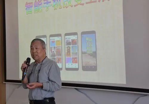 4日上午9點,在廈門禾緣社區(qū)的社區(qū)學校里,70歲的殷銀山主講的老年人智能手機學習班準時開課。面對臺下坐得滿滿當當?shù)你y發(fā)學員們,殷銀山使用大屏幕為大家講解智能手機的使用技巧。