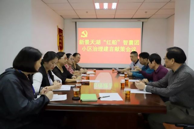 ▲徐滿萍參加新景天湖“紅船”智囊團小區(qū)治理建言獻策會議