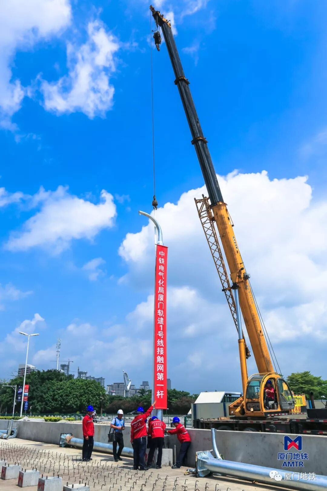 地鐵1號(hào)線(xiàn)接觸網(wǎng)“第一桿”成功安裝