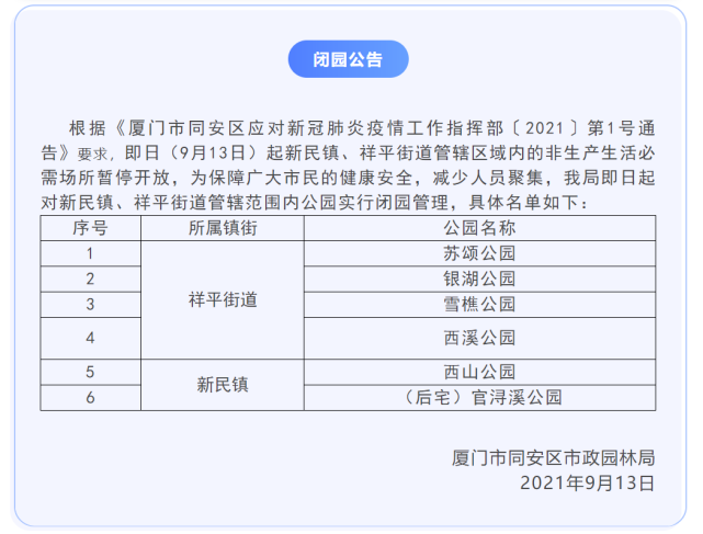 同安區(qū)部分公園臨時(shí)閉園!