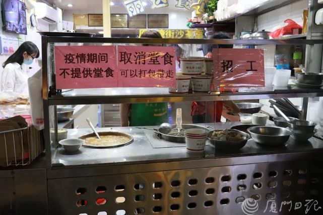湖里區(qū)海天路的肯德基、麥當(dāng)勞、豪享來(lái)等餐飲店,工作人員已調(diào)整店內(nèi)布局,在入口處張貼11號(hào)通告或“謝絕堂食”的標(biāo)識(shí),并在入口處進(jìn)行圍擋,設(shè)置取餐專用臺(tái)。