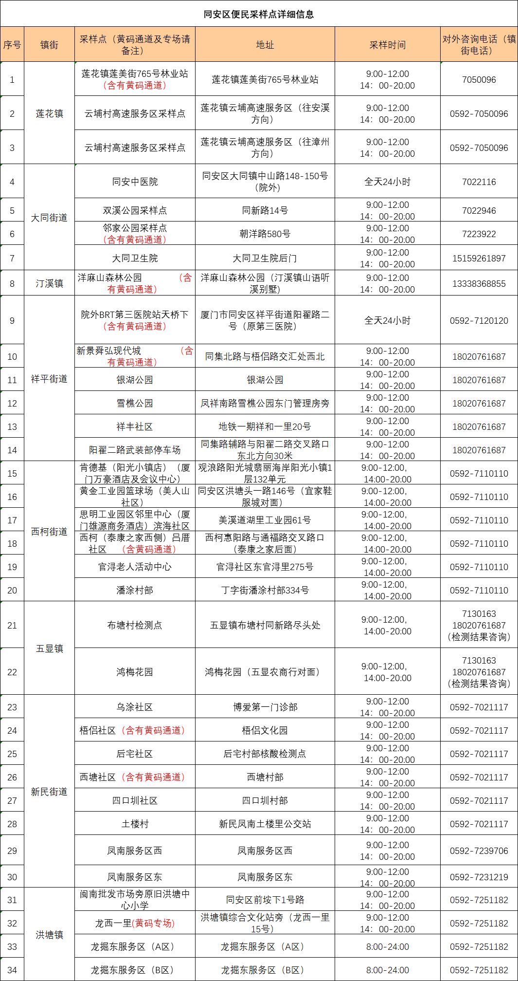 5月10日,同安設(shè)置34個便民核酸采樣點,具體點位信息詳見下圖。