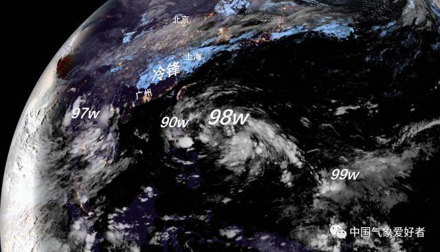 10月11日晚上,西北太平洋和東亞有四個臺風(fēng)胚胎共舞,分別是已登陸中南半島的97w,菲律賓以東的90w、98w和99w。