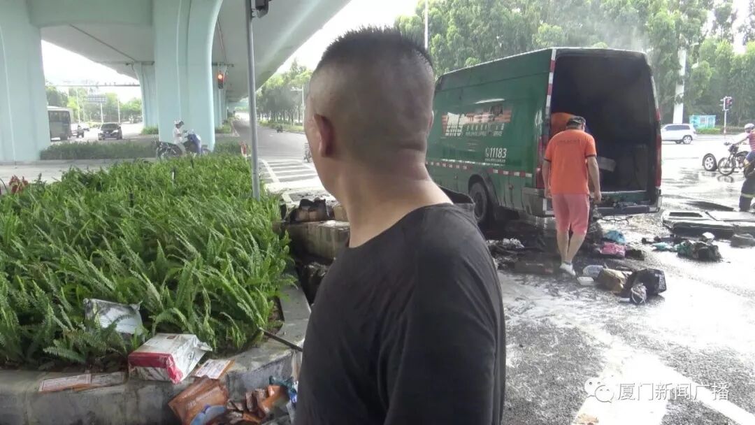 因車內(nèi)較多物流包裹正在燃燒