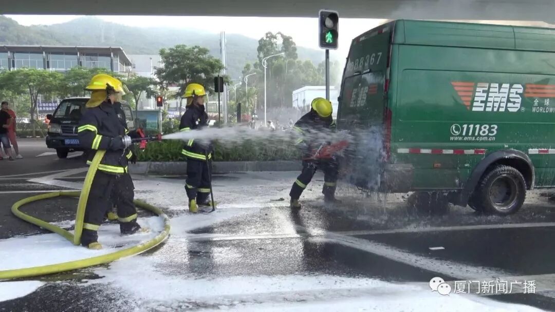 據(jù)目擊者說(shuō),事發(fā)當(dāng)時(shí)看到郵政EMS快遞車停在最左車道上,車頭竄出火苗,很快車頭被大火席卷,現(xiàn)場(chǎng)濃煙滾滾?;鹎榘l(fā)生后,車上人員用干粉滅火器撲救火勢(shì),但可能是因?yàn)檐噧?nèi)堆放太多易燃的快遞包裹,不能起到明顯滅火效果。