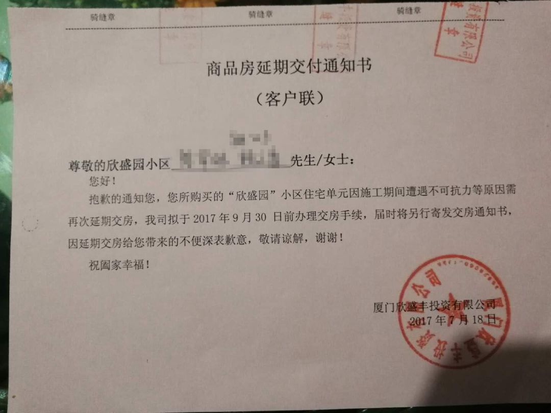 通知書說(shuō),因?yàn)槭┕て陂g一些不可抗力因素導(dǎo)致延期交房,并承諾,會(huì)在2016年12月31日交房。由于開發(fā)商理由看似正當(dāng),業(yè)主們也只好默許。