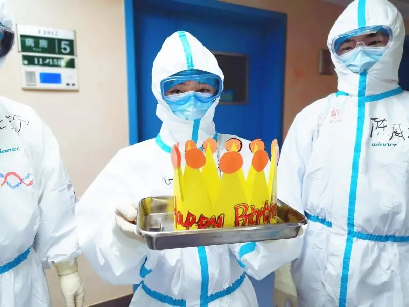 “因為上夜班,經(jīng)常不能按時吃上飯,所以她的胃不好,我就給她準(zhǔn)備好吃的。”謝學(xué)金說,“我們都是第一次近距離接觸新冠肺炎病毒,都會害怕,我是男的,自然應(yīng)該想盡辦法保護好她。”